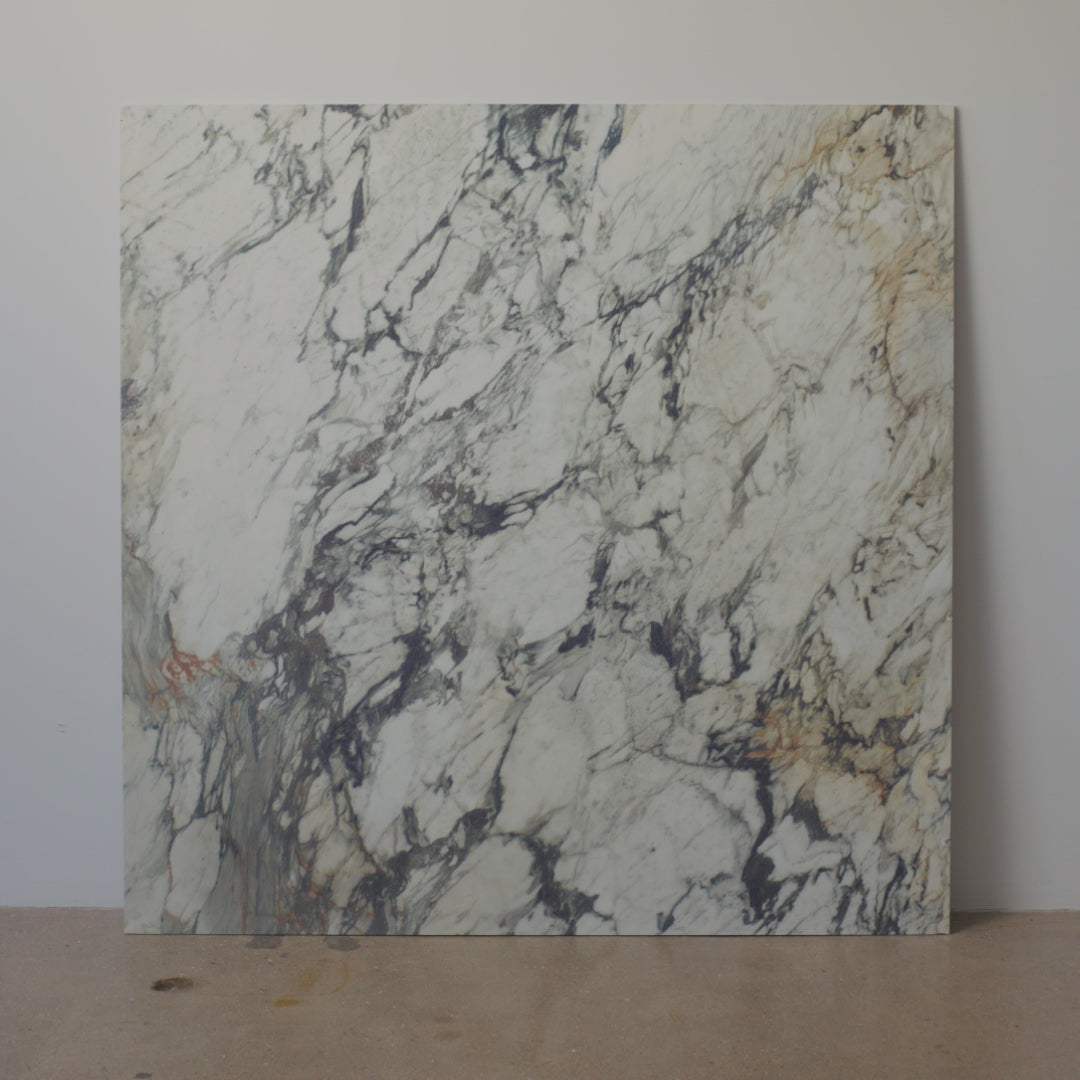 Breccia Capraia brings the drama of Italian marble into porcelain form, with a luminous white base swept by bold strokes of charcoal, navy, chestnut, and violet, enriched by touches of rust. The result is a surface that feels both artistic and architectural, full of energy and natural elegance.